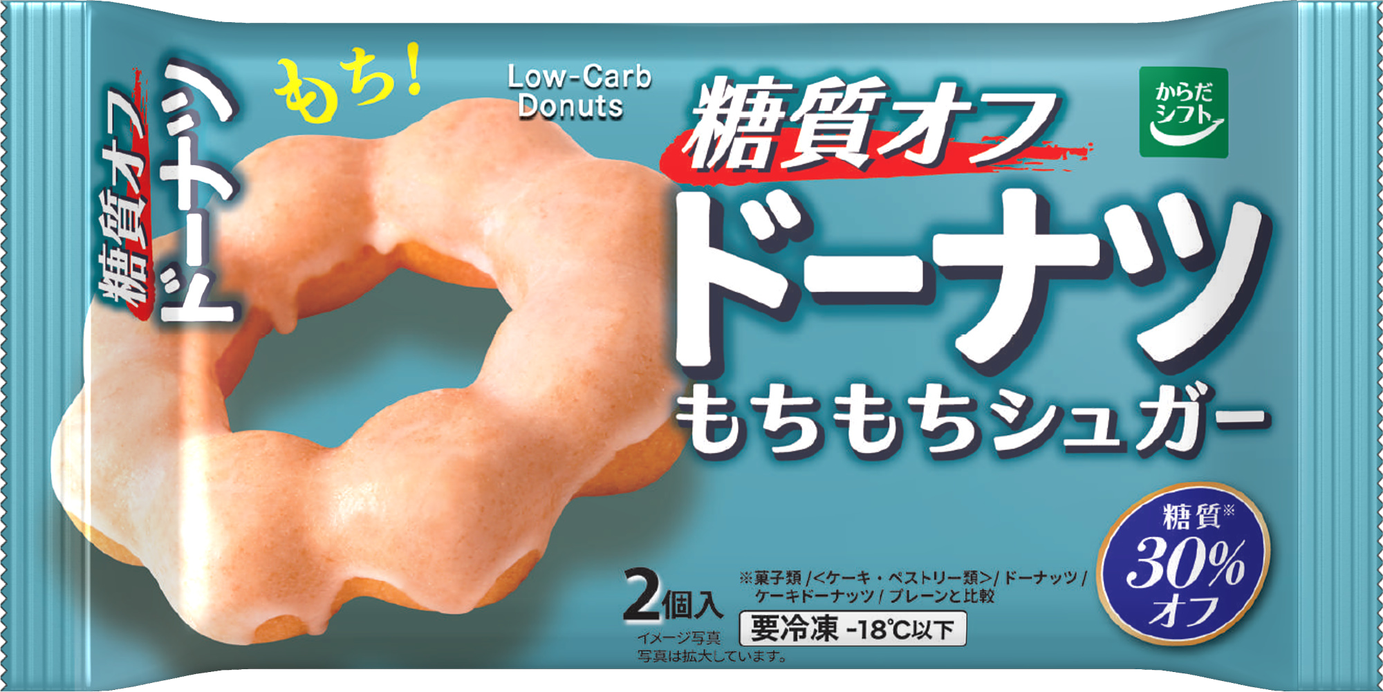 糖質オフをしながらもち!とした食感のドーナツをお楽しみいただけます。シュガーグレーズをコーティング。シンプルな生地に控えめな甘さが合わさり、糖質オフなのにおいしいドーナツです。